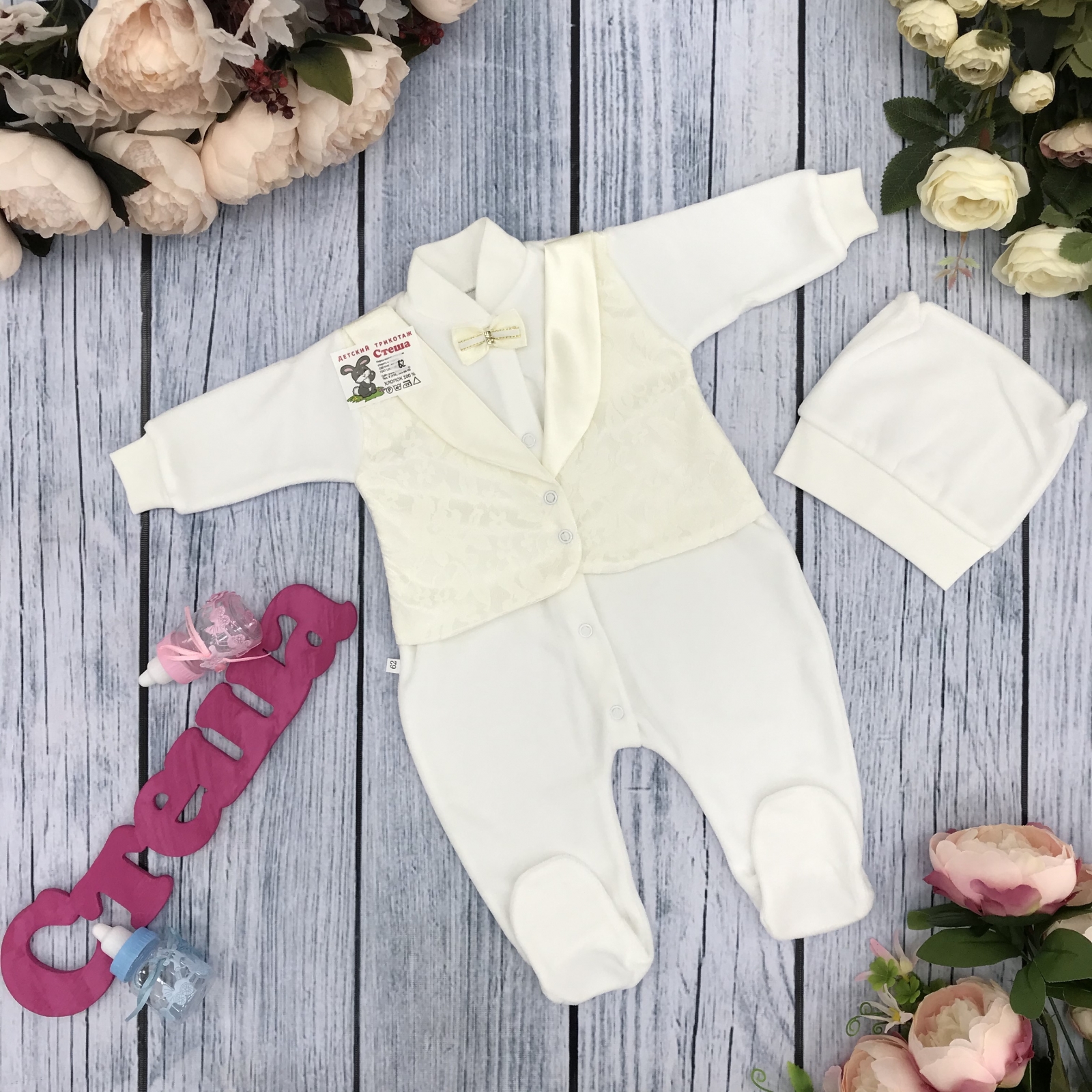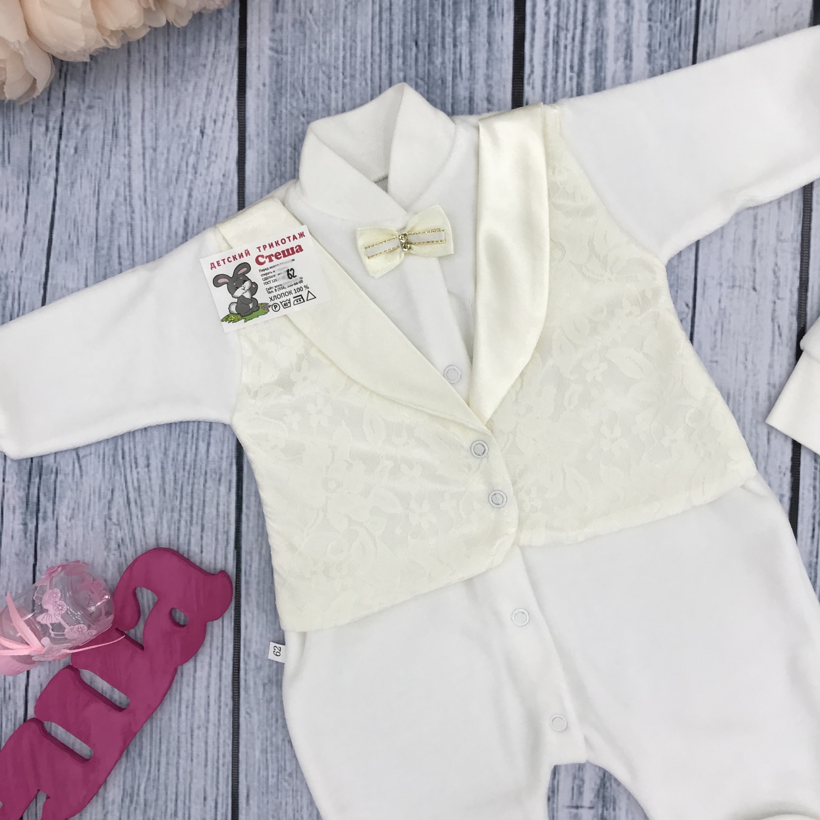 Теги: Купить оптом детский комбинезон из велюра. 261-М. Комбинезон с шапкой, хлопок 80% велюр 20% ПЭ, молочный цена,отзывы официальный сайт "Стеша Братск"