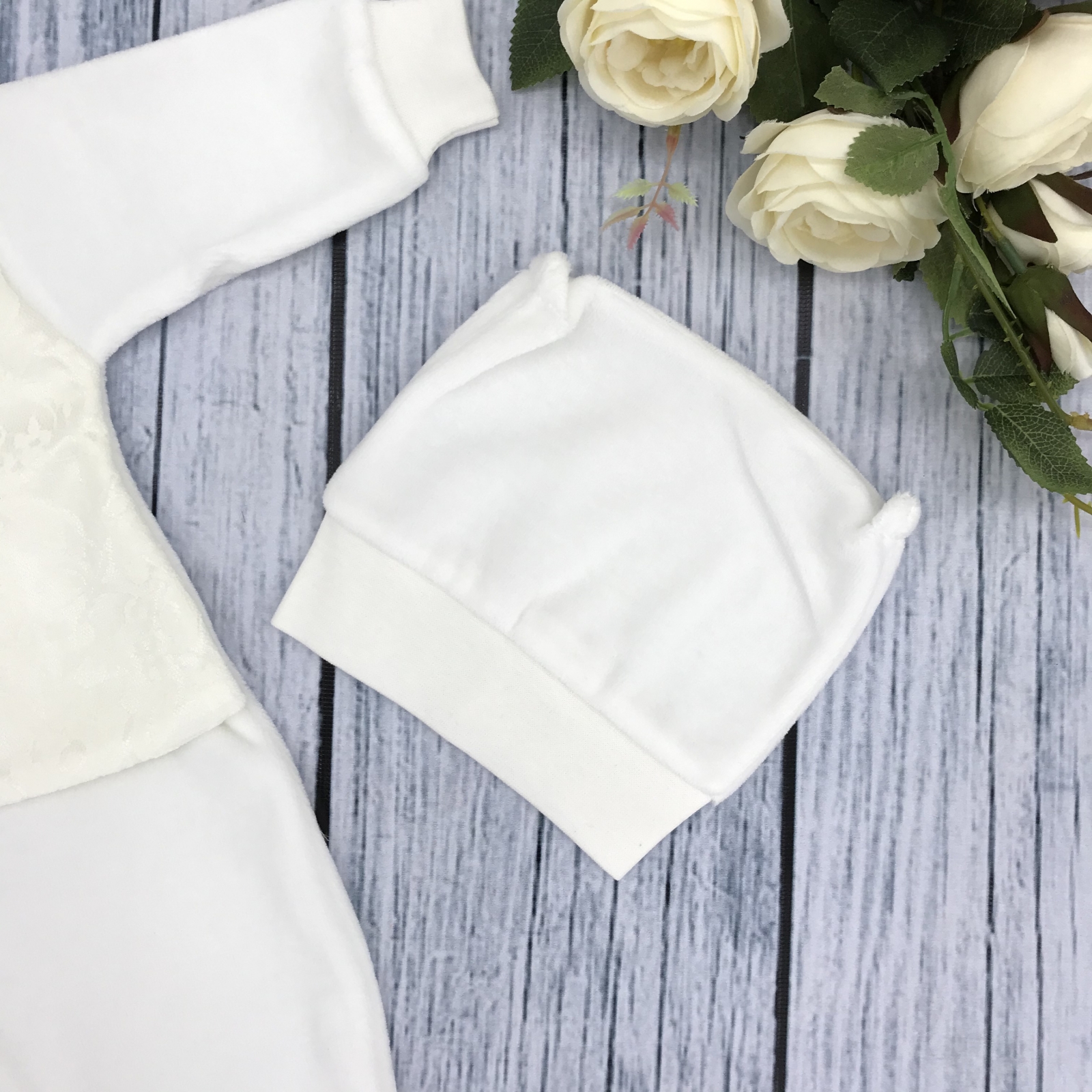 261-М. Комбинезон с шапкой, хлопок 80% велюр 20% ПЭ, молочный
