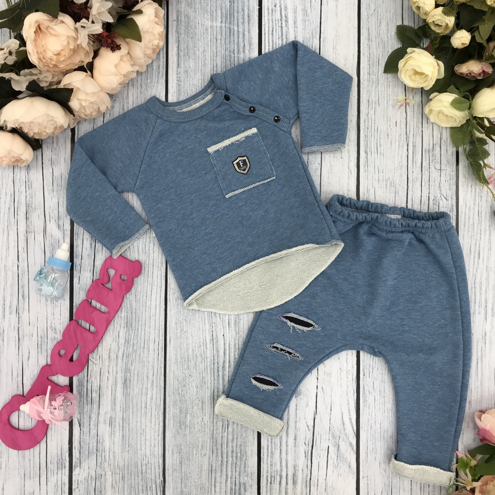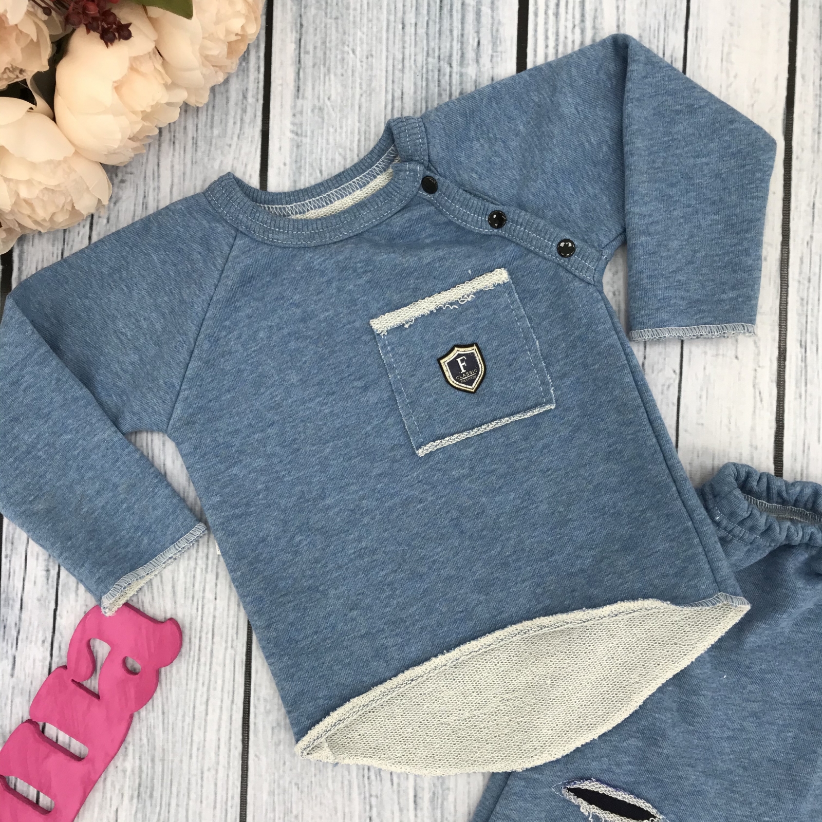 Купить оптом 239. Костюм ясельный, хлопок 65%, 35% ПЭ, 3-х нитка футер без начеса, джинса 74,80,86 в Братске