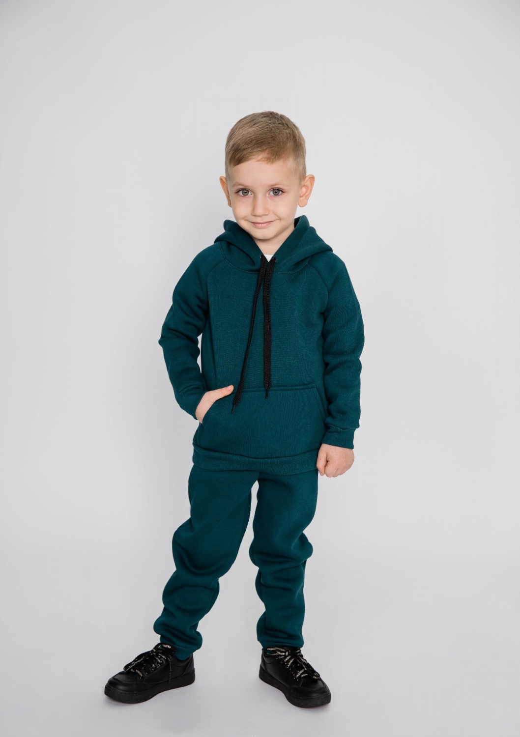 Купить оптом 296-И. Свитшот с капюшоном + Штаны, хлопок 65%, 35% ПЭ, 3-х нитка (начес) изумрудный 122,128,134,140 в Братске