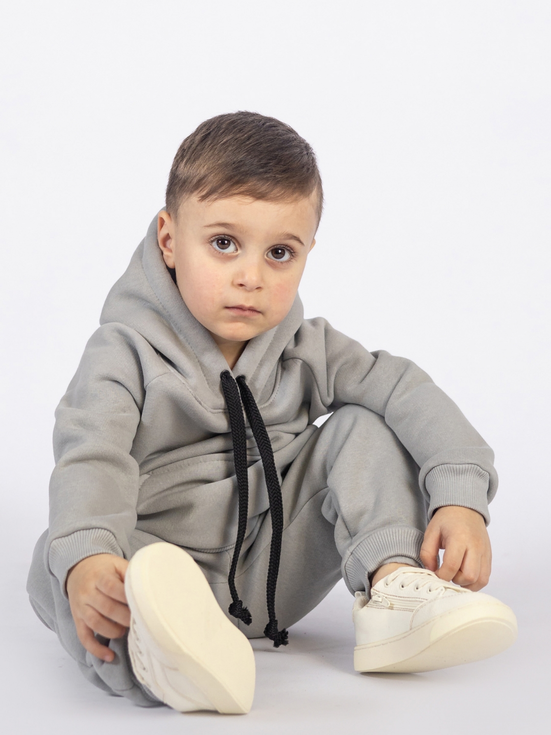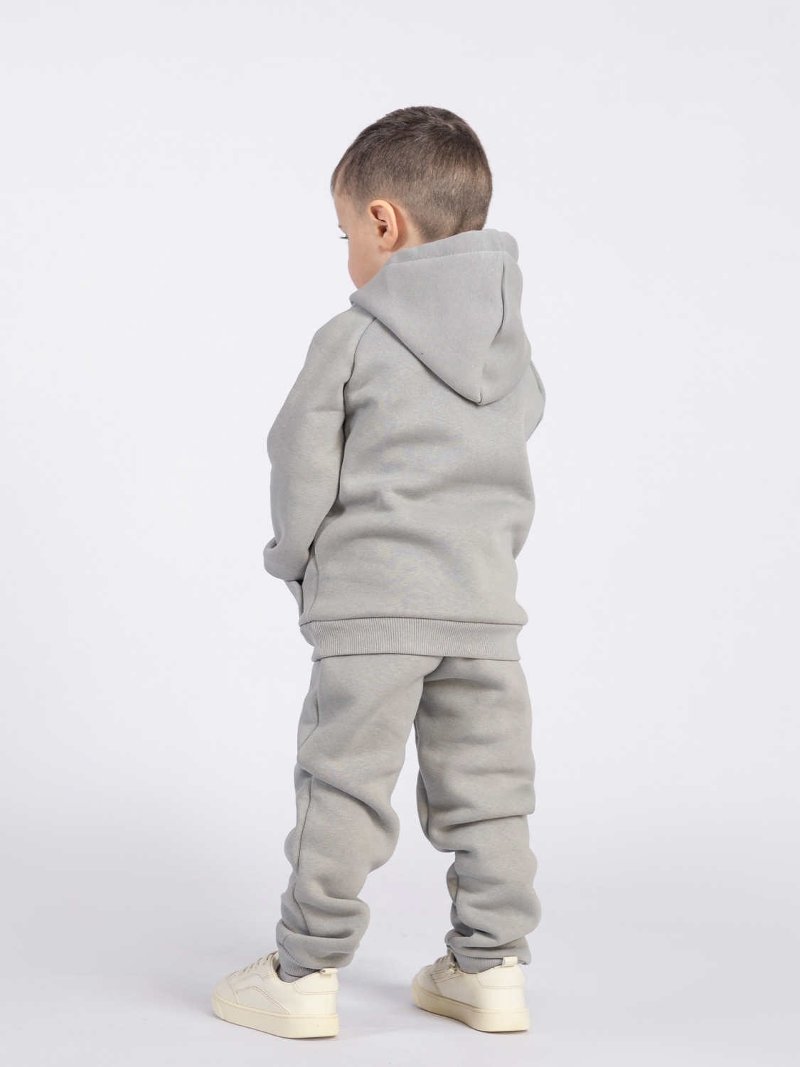 Купить оптом 296-С. Свитшот с капюшоном + Штаны, хлопок 65%, 35% ПЭ, 3-х нитка (начес) серый 122,128,134,140 в Братске