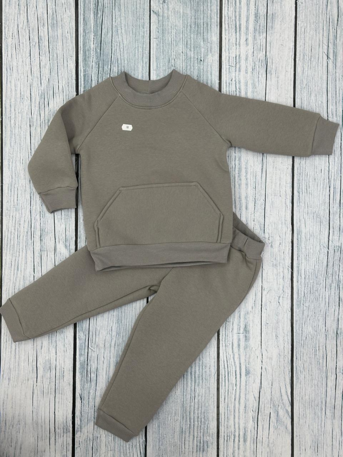 Купить оптом 297-СЕР. Свитшот + Штаны, хлопок 65%, 35% ПЭ, 3-х нитка (начес) серый ,80,86,92,98,104 в Братске
