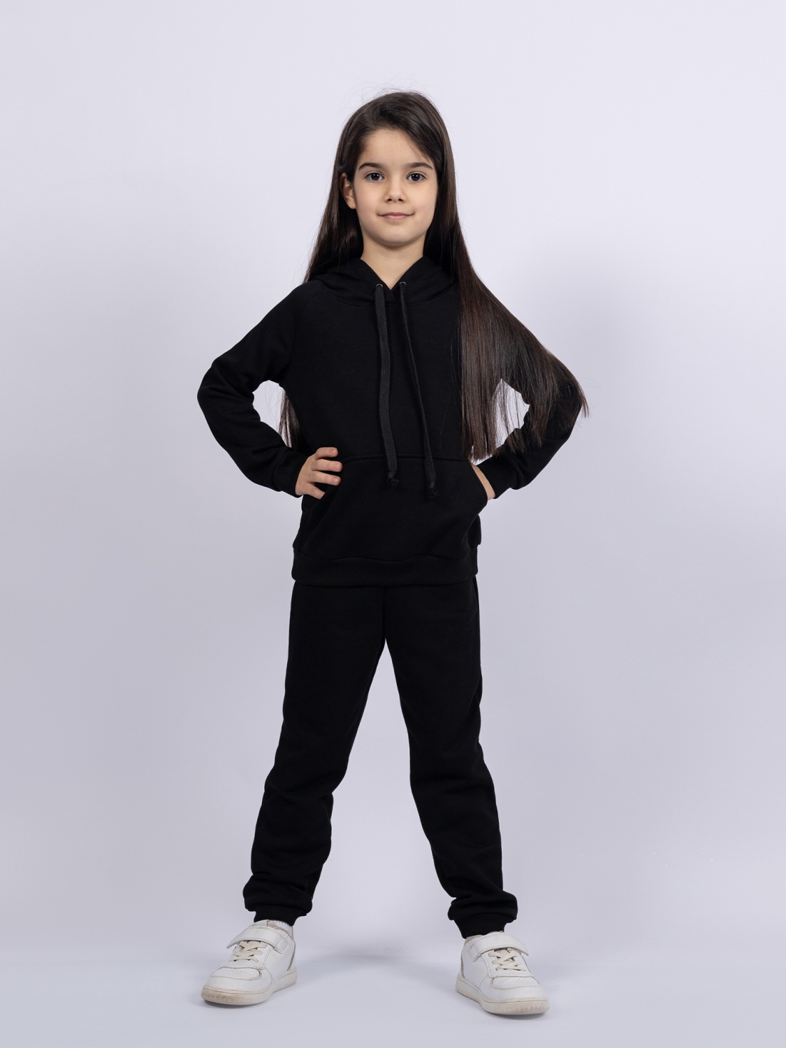 Купить оптом 311-Ч. Свитшот с капюшоном + Штаны, хлопок 65%, 35% ПЭ, 3-х нитка ( без начеса) черный 98,104,110,116 в Братске